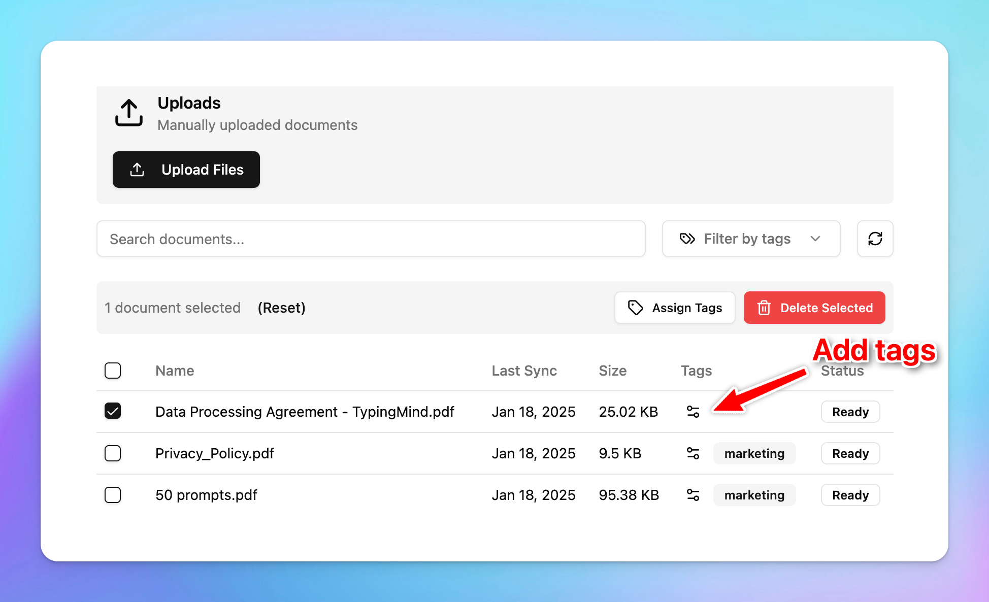 Tags let you control which parts of the Knowledge Base the AI can access, making it more flexible and powerful.